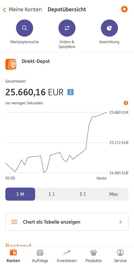 Es gibt keine Mindestdepotgröße und keinen Mindestumsatz. Für langfristiges Sparen über ETF-Sparpläne ist das Gemeinschaftsdepot bei der ING damit vergleichsweise günstig. Wer häufig größere Einmalorders platziert, zahlt aber deutlich mehr als bei den meisten Neobrokern.