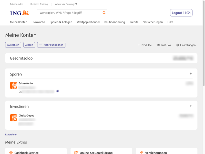 Die ING bietet dagegen ein eher klassisches Online-Banking-Nutzererlebnis mit einer vollwertigen Desktop-Oberfläche. Wenn ihr eure Wertpapiere lieber am Rechner verwaltet oder gern alle eure Konten an einem Ort habt, seid ihr hier richtig.
