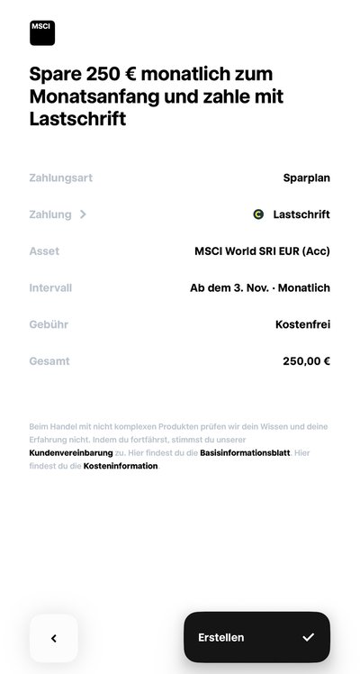 Die Einrichtung eines Sparplans ist unkompliziert, aber etwas weniger flexibel als bei der ING. Auf erweiterte Funktionen, wie die Dynamisierung der Sparrate oder die automatische Wiederanlage, müsst ihr hier verzichten.