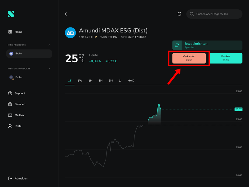 Möchtet ihr eine Limit-Verkaufsorder aufgeben, klickt ihr zunächst auf den Button „Verkaufen“.
