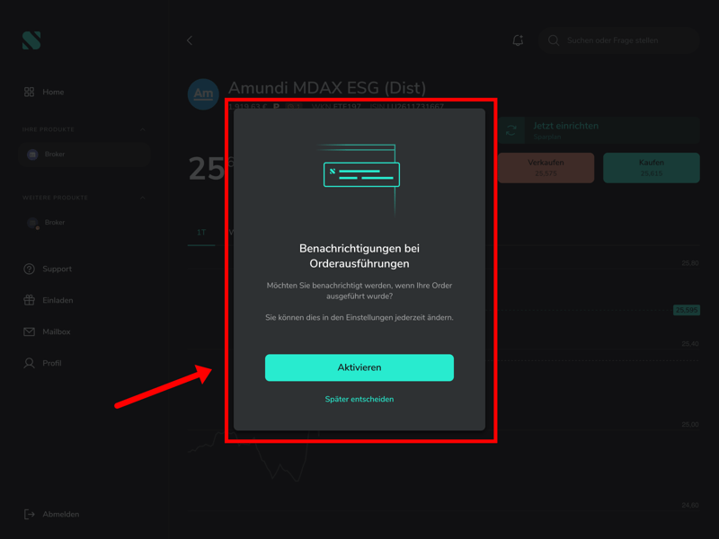 Zusätzlich erscheint ein Popup, in dem ihr auswählen könnt, ob ihr bei einer Ausführung der Order per Benachrichtigung informiert werden möchtet.