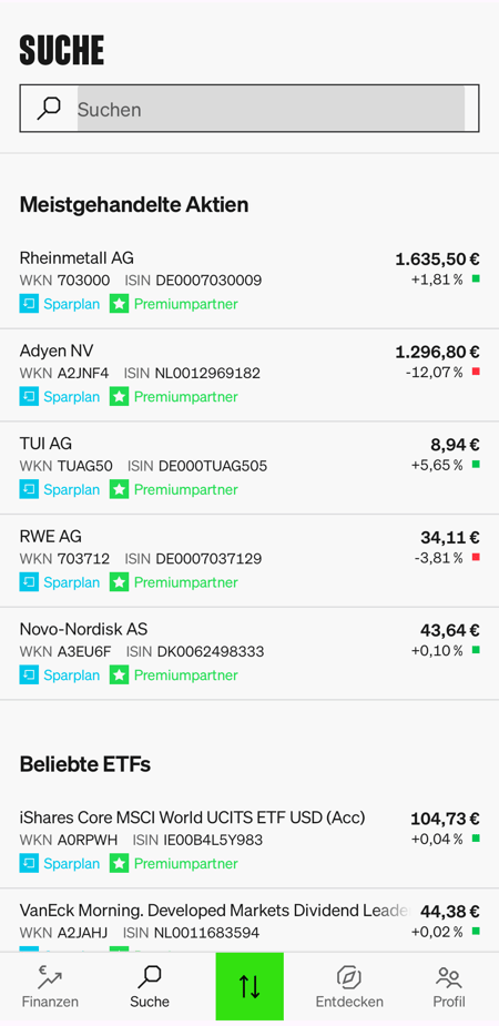 Wer sich am Design nicht stört, bekommt dafür einen modernen, auf Smartphone-Trading optimierten Neobroker, bei dem alle wichtigen Depotfunktionen schnell erreichbar sind.
