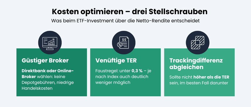 Broker-Kosten, TER und Trackingdifferenz: Wer diese drei Punkte beachtet, behält mehr von seiner Rendite.