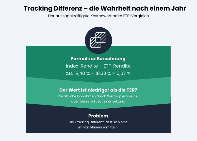 Da die TER, wie oben beschrieben, eben nicht alle Kosten abdeckt, gibt es die wichtige Kennzahl: die Tracking-Differenz. Sie ist der ultimative „Test“ für einen ETF. Sie beschreibt den realen Unterschied zwischen der Rendite des Index und der Rendite eures ETFs.