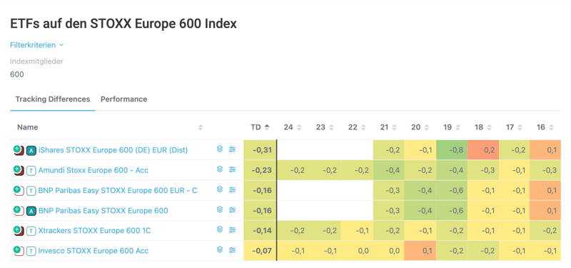 In manchen Fällen schlägt der ETF den Index sogar (z. B. TD von -0,1 %). Das liegt an zusätzlichen Einnahmen des Fonds: