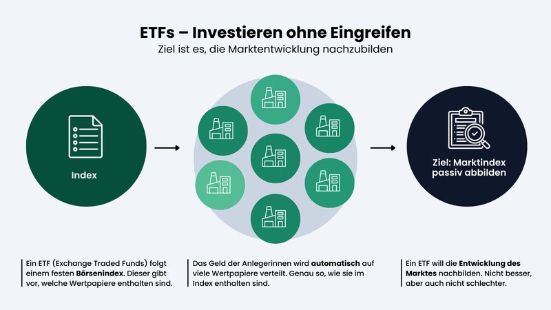 ETFs sind passiv gemanagte Wertpapierkörbe mit Indexnachbildung.